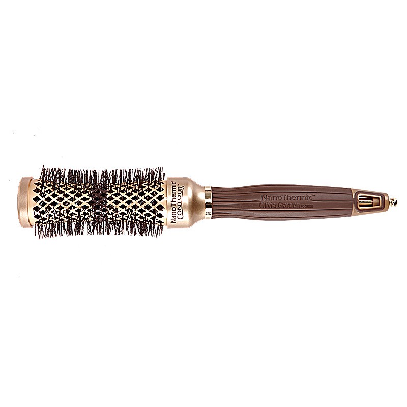 Cepillo profesional elaborado a partir de la combinación de diferentes tecnologías. Características: - Único con forma curvada: cerdas y tubo que acarician el cuero cabelludo y crea unos rizos más fuertes y duraderos. -Resultados naturales más duraderos. -Rejillas extra grandes de ventilación que permiten una mayor circulación de aire, reduciendo el tiempo de secado y dando forma al cabello más rápido. -La última tecnología en cerámica: se calienta más rápido y conserva el calor más tiempo, logrando peinados superiores y de larga duración. -Tecnología de Turmalina Iónica: hidrata la cutícula, añade más brillo al cabello y elimina el encrespado y los cabellos sueltos. -Tecnología de Nano-plata: provee protección anti-bacterial, el cabello queda más saludable y más fácil de peinar. -Diseño único de cerdas: resistentes al calor y de puntas suaves. -Liviano para un peinado sin esfuerzo. -Mango ergonómico de fácil agarre para una mayor comodidad. -Pincho seccionador retractable, para separar el cabello.
