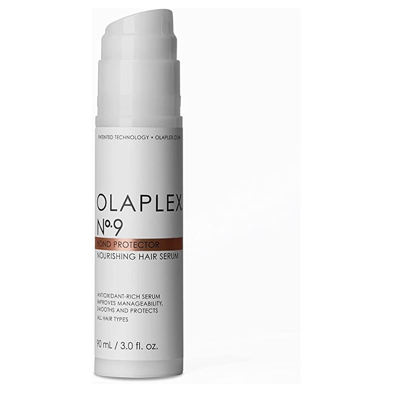 OLAPLEX Nº9 Bond Protector Nourishing Hair Serum es un sérum capilar antioxidante sin aclarado para proteger el cabello de la contaminación y el calor que causan enredos, rotura y electricidad estática. OLAPLEX Bond Building Technology™ se combina con un potente extracto de algas rojas rico en antioxidantes para nutrir el cabello, bloquear los contaminantes y neutralizar los radicales libres. Consigue un brillo satinado, estilo duradero, rizos con rebote, acción antienredos y antiestática, y protección contra el calor hasta 450°F. Para todo tipo de cabellos.