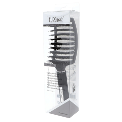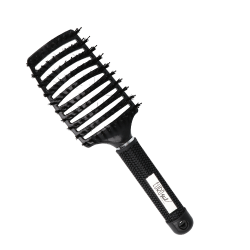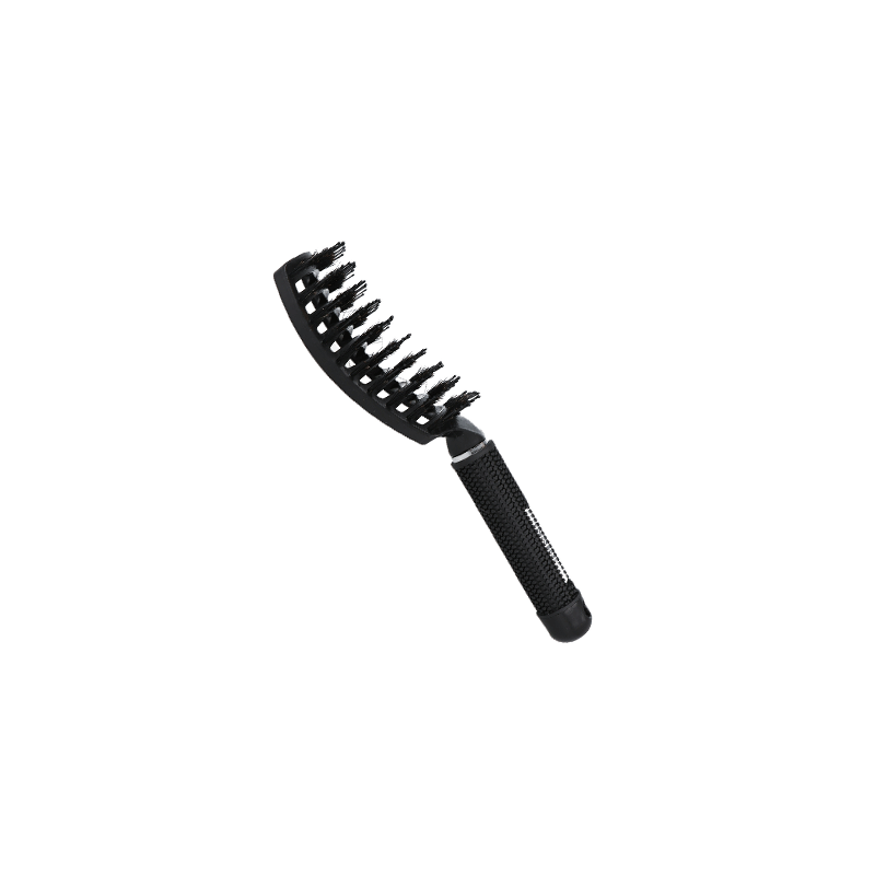 Cepillo vent curvo con púas de nylon a doble altura y bolas en el extremo. Uso cómodo y suave gracias a su diseño flexible.