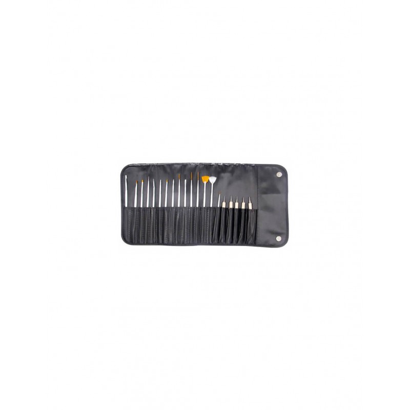 Este conjunto incluye 15 pinceles de nail art, cada uno con una doble punta, lo que suma un total de 30 opciones para la creación de diseños. Cada pincel tiene una punta metálica fina en cada extremo, lo que permite una precisión excepcional al pintar y decorar las uñas.