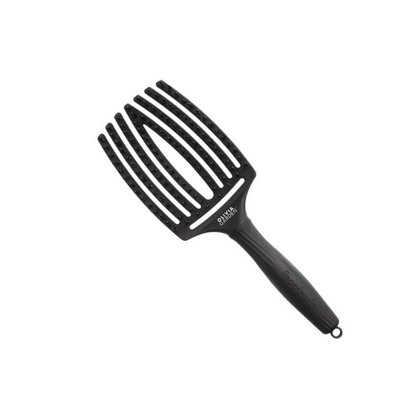 El Finger Brush Combo Large Full Black OLIVIA GARDEN es un cepillo único en su diseño, con forma de mano para un masaje en el cuero cabelludo en cabello seco o mojado. Con su mezcla de cerdas de jabalí y cerdas de nylon, este cepillo garantiza calidad y un cuidado excepcional para tu cabello. Las cerdas de jabalí suavizan el cabello, aportándole brillo y volumen, mientras que las cerdas de nylon estimulan suavemente el cuero cabelludo. Además, las cerdas de nylon son antiestáticas y cargadas de iones, evitando que el cabello se cargue de electricidad estática y manteniéndolo liso y brillante.