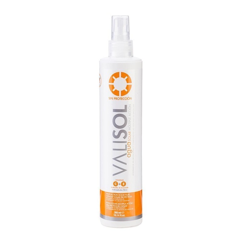 ¿Qué es? Agua solar múltiple acción sin protector solar. Su avanzada formulación permite su pulverización lo cual facilita su aplicación. Contiene tirosina. riboflavina. y aminoácidos que activan e intensifican el bronceado ya que favorecen la síntesis de melanina.